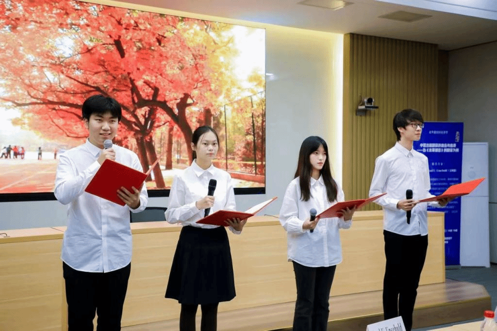 方霖城、夏昀菎、郑瑞丹、李奕萱等四位同学深情朗诵了经典德文诗歌《秋日》和《希望》动听的嗓音为颁奖仪式画上了圆满的句号。