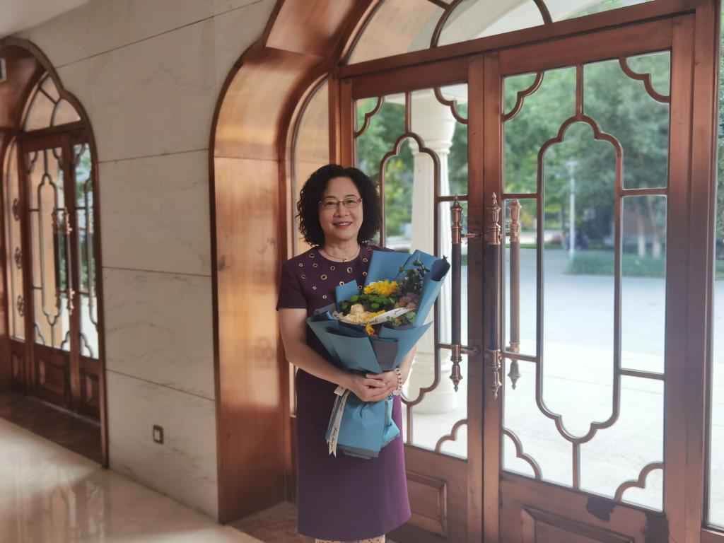 座谈结束后,大家合影留念,学生代表为程慧玲校友献花,常秀鹏书记代表买球官方网站为校友赠送纪念品。
