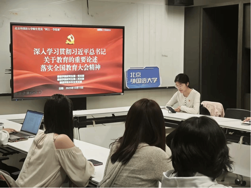 本科生党支部书记褚静璇谈到,怀部长的报告系统阐释了教育强国建设的宏伟蓝图,令她深受鼓舞。她表示,作为外语院校的学子,不仅要夯实语言基本功,更应深刻理解教育所具有的政治、人民和战略三重属性,主动将个人发展融入国家发展大局,努力成为中外文明交流互鉴的桥梁。