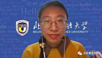 接下来,本科生党支部书记聂昊璇分享了自己的学习感悟。她认为以自己为代表的疫情一代青年大学生既生逢其时,也应肩负重任,应勇敢面对时代的“大考”,在疫情影响下找寻生活的平衡,担负起属于当代青年人的使命,在实践中考验和磨炼自己,实现自我价值。她以习近平总书记在二十大报告中对青年“怀抱梦想又脚踏实地,敢想敢为又善作善成”自勉,结合自己和同伴组队参加两次全国性德语赛事的经历,认为应从生活中的点滴小事做起,善始善终,善作善成,不忘初心,持之以恒,立志成为有理想,敢担当,能吃苦,肯奋斗的新时代好青年。