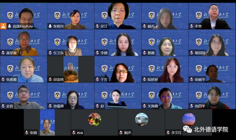 最后,买球官方网站党总支书记、院长吴江结合自己对汉语“德”字的学习心得及北外德语专业历史的发展,分享了自己学习二十大报告的感悟,强调“立德树人”是高校党员教师的职责所在,全体党员教师应在教研实践中起到模范带头作用,不断追求卓越。吴江同时代表学院对疫情防控中勇挑重担的党员教师以及全体班主任老师给予了高度认可。