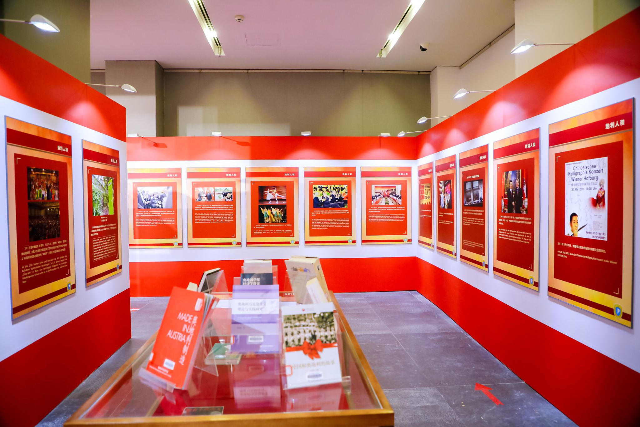 开展仪式结束后,嘉宾们在讲解志愿者北外买球官方网站2021级本科生刘晨曦、2022级本科生黄婉茹的带领下参观了主题展。主题展共分为三个板块。第一板块“情系中国”介绍李夏德教授与中文和中国的结缘;第二板块“文心雕龙”介绍李夏德教授对奥地利维也纳大学孔子学院建设作出的贡献;第三板块“地利人和”是聚焦中国与李夏德教授的故乡——奥地利1971年建交以来的重要篇章。买球官方网站学生流利的德语、丰富的知识储备以及昂扬向上的精神风貌给嘉宾们留下了深刻印象。