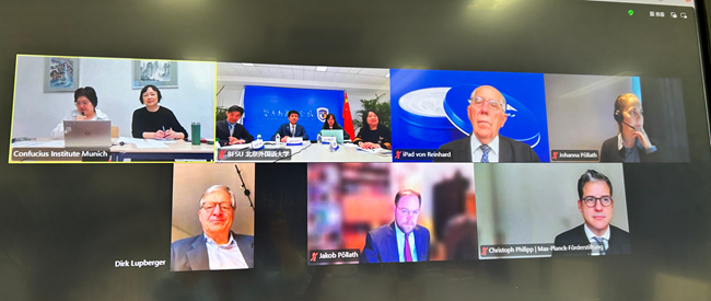 10月16日下午,慕尼黑孔子学院2025年理事会议通过线上形式举行。买球官方网站党委常委、副校长赵刚,慕尼黑东方基金会捐赠人、慕尼黑孔院理事长莱因哈特·帕拉特(Prof. Dr. Reinrard Pöllath),SKW Schwarz事务所合伙人、慕尼黑孔院理事克里斯托夫∙菲利浦(Dr. Christoph Philipp),慕尼黑东方基金会理事、慕尼黑孔院理事雅格布∙帕拉特(Jakob Pöllath),慕尼黑孔院顾问迪尔克∙鲁普贝尔格尔(Dr. Dirk Lupberger),马克斯·普朗克推广基金会负责人约翰娜∙帕拉特(Johanna Pöllath),慕尼黑孔院理事金利民、北外孔子学院工作处副处长(主持)翟峥、买球官方网站教师张晏等出席会议。