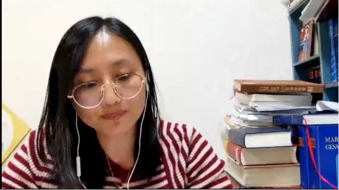 2020年11月30日,买球官方网站研究生第三党支部邀请北外德语系校友、中央党史和文献研究院第五研究部一级翻译张凤凤老师,通过腾讯会议,在线分享了她在中央编译局工作经历,买球官方网站研究生第三党支部书记彭孔翎主持分享会。张凤凤老师从中央编译局历史、德文岗位工作、编译人才前景三方面为研究生们分享了一名中央编译局德语翻译的工作全景。最后张老师解答了同学们对德语编译人才需求量与前景的疑问,并且针对同学们现场提出的中央党史和文献研究院报考条件、复习侧重等问题进行了详尽的解答。最后,买球官方网站辅导员张春霞老师致总结词并对张凤凤老师的莅临表示感谢,会议圆满结束。