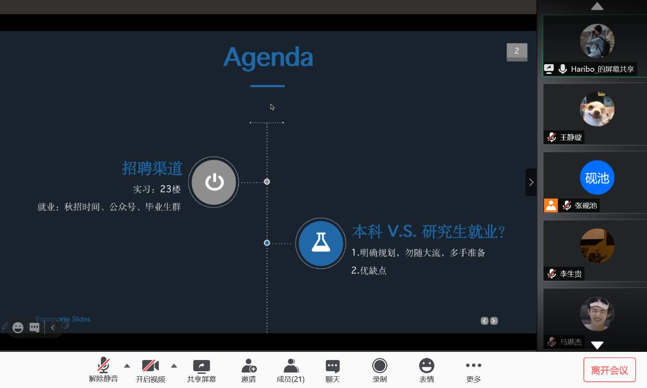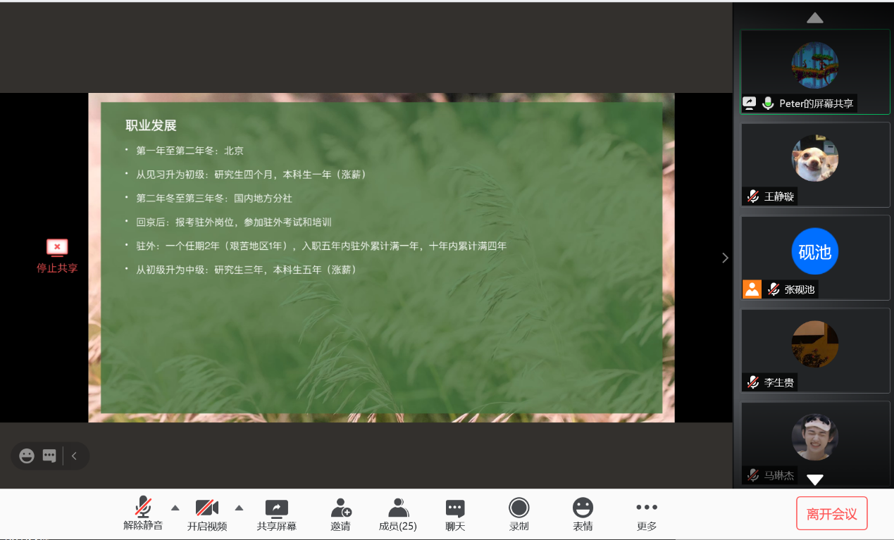 2020年12月8日,买球官方网站新华社就业经验分享会以线上会议方式成功举行。买球官方网站2019届本科毕业生车云龙及2019届硕士毕业生(德国外交与经济方向)贾金明受邀与买球官方网站本科生、研究生分享了新华社具体情况、就业经验及备考建议,并解答了同学们的问题。会议由买球官方网站研究生会主办,研究生会张砚池主持。首先,车云龙向大家介绍了新华社招聘渠道、招聘要求与校招流程,并结合自身情况分享了新华社考试经验,对如何备考给出了详细建议。随后,贾金明向大家介绍了新华社入职之后的工作模式,就大家十分关心的新华社职业发展与待遇问题做了详尽的说明。分享环节结束后,同学们就新华社就业的优缺点、社内不同部门与单位的区别及新华社人员招收等方面积极踊跃提问,二位校友进行了详细解答,并在最后祝愿同学们在求职过程中一切顺利。