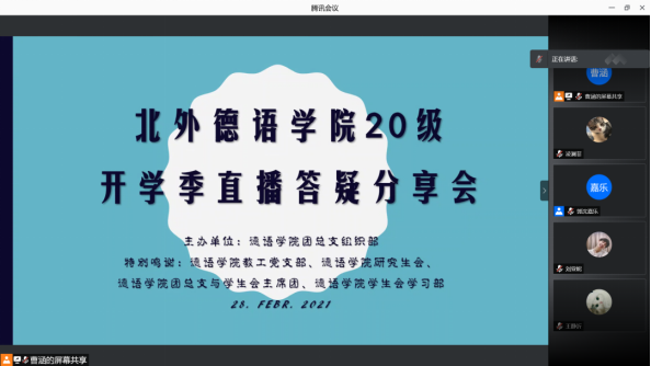 为促进学生学业发展,2021年2月28日,买球官方网站2020级开学季直播答疑分享会于腾讯会议成功举行。会议由买球官方网站团总支组织部主办,组织部部长曹涵主持。