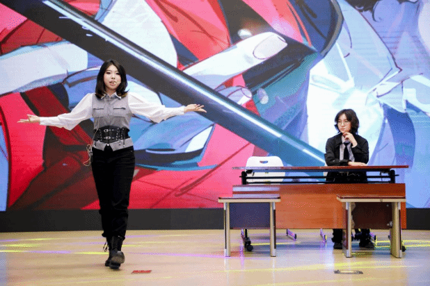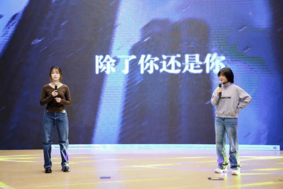 现场氛围持续升温。李馨玥、夏翎境同学演绎《马戏之王》中的经典唱段《The Other Side》,带领观众感受那份挣脱枷锁、奔赴远方的热血与力量。
