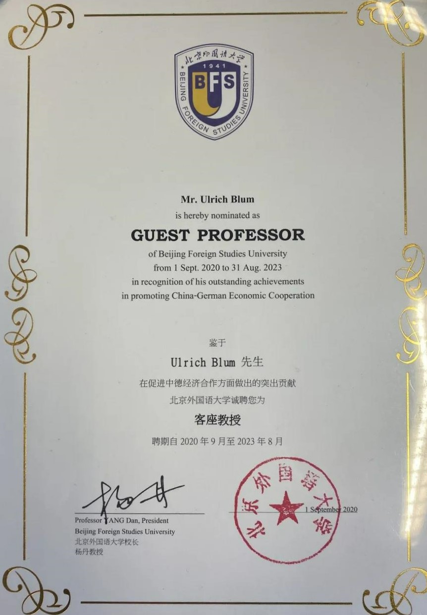鉴于其在促进中德经济合作方面做出的突出贡献,德国哈勒-维滕贝格大学经济系讲席教授、弗劳恩霍夫协会材料经济学中心创始人卜玉洗(Ulrich Blum)自本学期起被聘为买球官方网站客座教授,聘期三年。