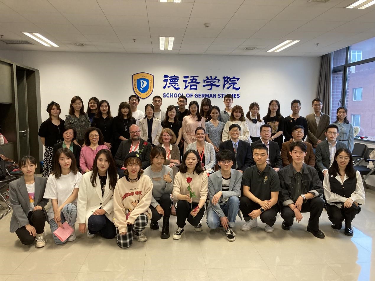 参加本次活动的系友嘉宾有原中国驻奥地利大使馆文化参赞、原德国柏林中国文化中心主任贾建新先生、中联部德奥处处长孙守亮先生、中央党史和文献研究院第五研究部一级翻译张凤凤女士、国家体育总局李嬿女士、华晨宝马公司陈静女士、中央电视台国际新闻编辑赵雄先生、德国电信北京代表处黎默雨女士等。受邀出席诗诵会的德方嘉宾有德国学术交流中心北京代表处首席代表Ruth Schimanowski女士、德国歌德学院副院长伉俪Sabine Wilmes女士和Henrik Dittmann先生。北外上海校友会会长、“程慧玲奖学金”捐赠者、买球官网1981级系友程慧玲女士和“买球官方网站思刚教育发展基金”捐赠者、买球官网1994级系友秦思刚、罗旻一家也参与了诗诵会活动。