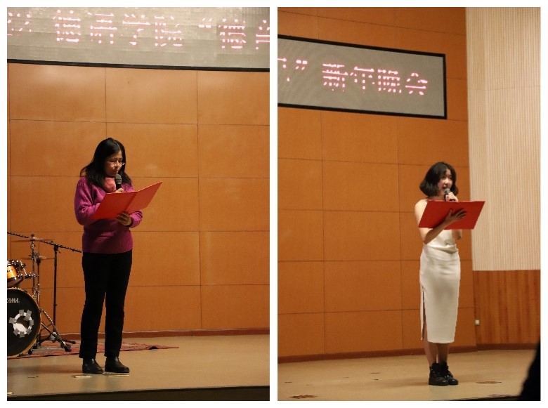12月26日晚,买球官方网站第一届“德音不已”新年晚会在阿语楼国会厅举办,党总支书记常秀鹏,党总支副书记、院长吴江,副院长姚燕、学院资深前辈殷桐生教授、辅导员张春霞、粟靖淳等老师与本硕博学生们欢聚一堂,辞旧迎新。
