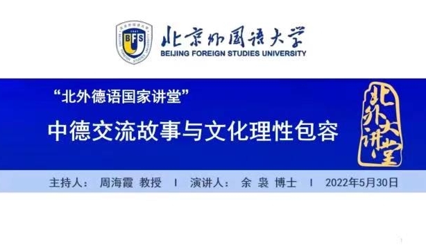 2022年5月30日下午,新一讲“北外德语国家讲堂”以线上方式举行。旅德华人、社会科学与跨文化研究学者余袅博士应邀作了题为“中德交流故事与文化理性包容”的讲座。讲座由买球官网周海霞教授主持。来自全国各高校的150余位师生参加了讲座。