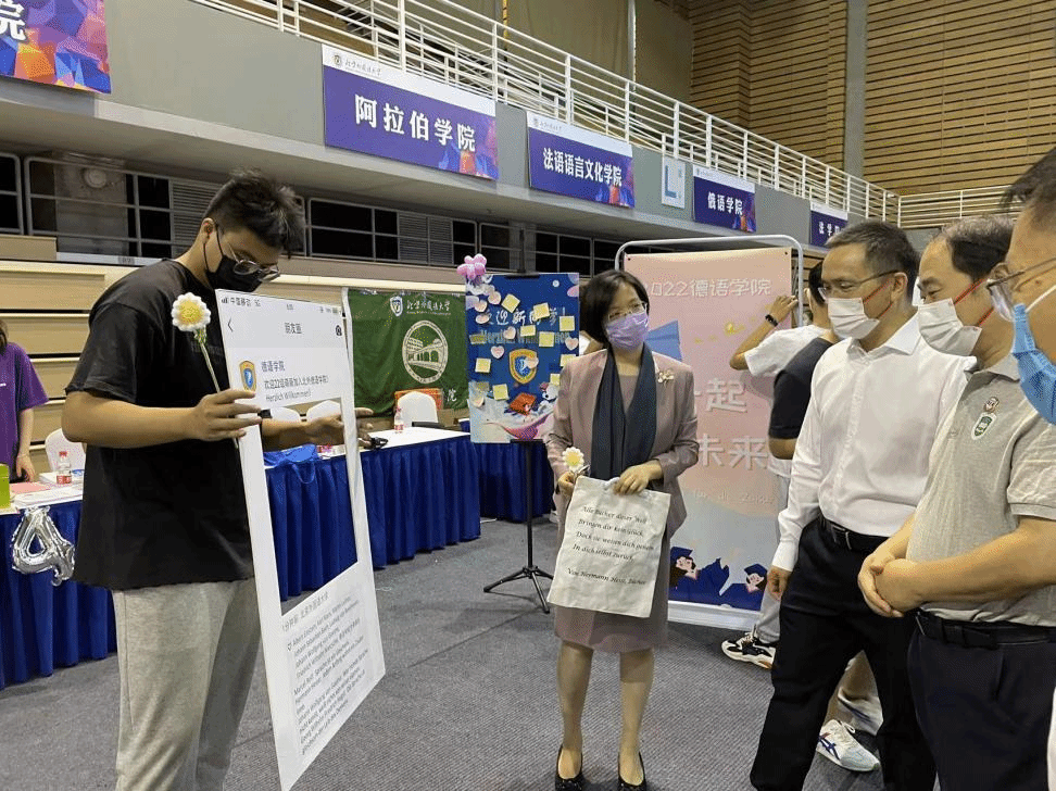 8月27日,体育馆二楼的买球官方网站迎新处,美丽的小雏菊正等待着买球官方网站新生们的到来。