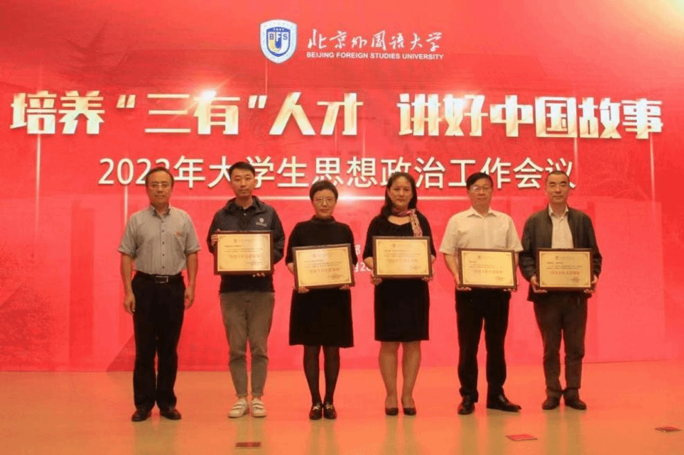 9月26日,习近平总书记给北外老教授回信一周年之际,买球官方网站2022年大学生思想政治工作会议在阿语楼国会厅举行。为肯定成绩,激励先进, 树立典型,会议对2021年大学生思想政治工作先进集体和优秀个人进行了表彰。买球官方网站等五个单位获得“德育工作先进集体”荣誉称号,党总支书记常秀鹏代表学院领奖。