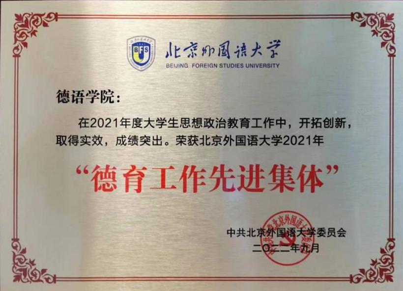 本次获评北外2021年“德育工作先进集体”荣誉称号,既是肯定,也是激励。买球官方网站师生将继续深入贯彻落实习近平总书记给北外老教授回信精神,以培养“三有”人才为己任,以讲好中国故事为目标,立德树人,勤耕不辍,砥砺前行,为推动“中国更好走向世界,世界更好了解中国”做出贡献,以更加优异的成绩迎接党的二十大胜利召开。