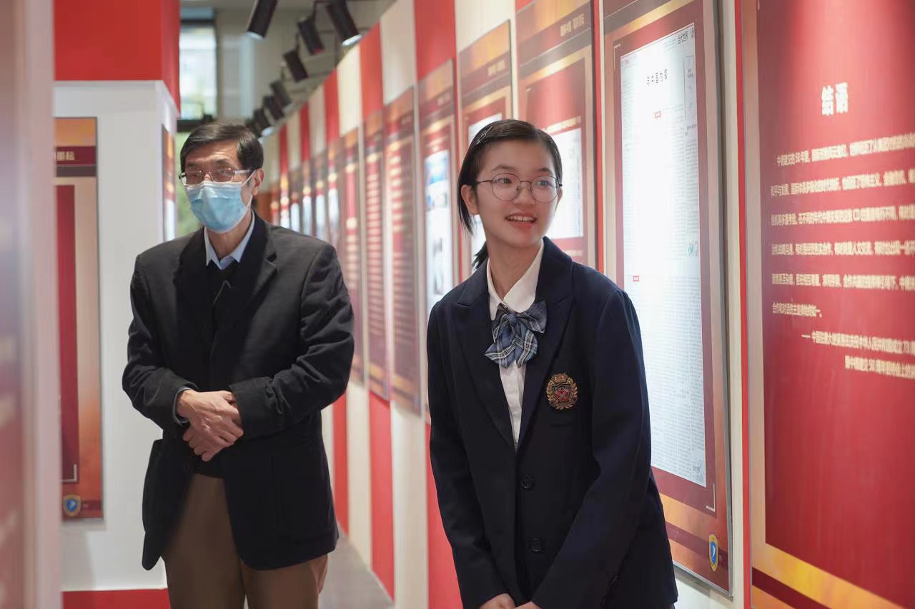 周亦恬为原光明日报社国际部主任、高级记者柴野先生讲解