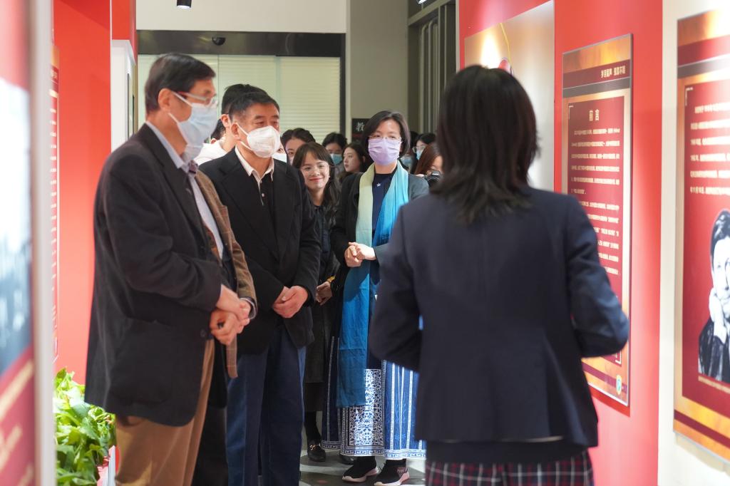 黄婉茹为北外买球官方网站1977级校友荣裕民先生一行讲解