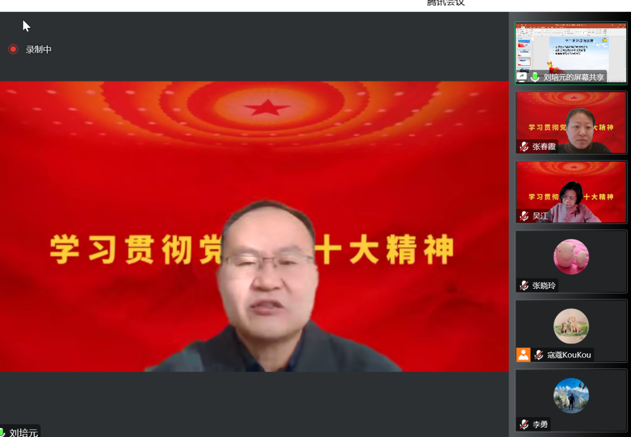 12月14日,买球官方网站邀请学校党的二十大精神宣讲团成员、党委常委、统战部部长、巡察办主任刘培元为教师党支部作题为“贯彻二十大精神,加强和改进党对高校的全面领导”的报告。买球官方网站党总支书记、院长吴江,党总支副书记李勇,教师党员、入党积极分子以及非党员教师代表等在云端聆听了宣讲报告。宣讲会由买球官方网站党总支组织委员、辅导员张春霞主持。