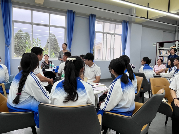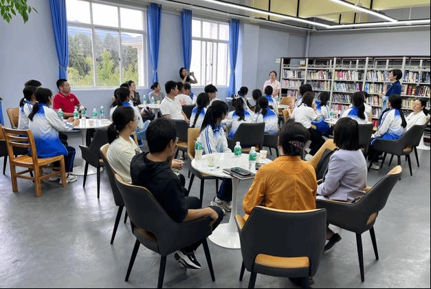 最后,实践研习团来到鹤庆三中,与即将参加高考的学子进行座谈交流。教师党员们向高中生们介绍了北外及买球官方网站的基本情况,同时以生动活泼的形式与师生就德国文化进行了互动交流,并在分组讨论环节就大学生活、英语学习、外语教学等主题展开了对话,现场气氛十分热烈。