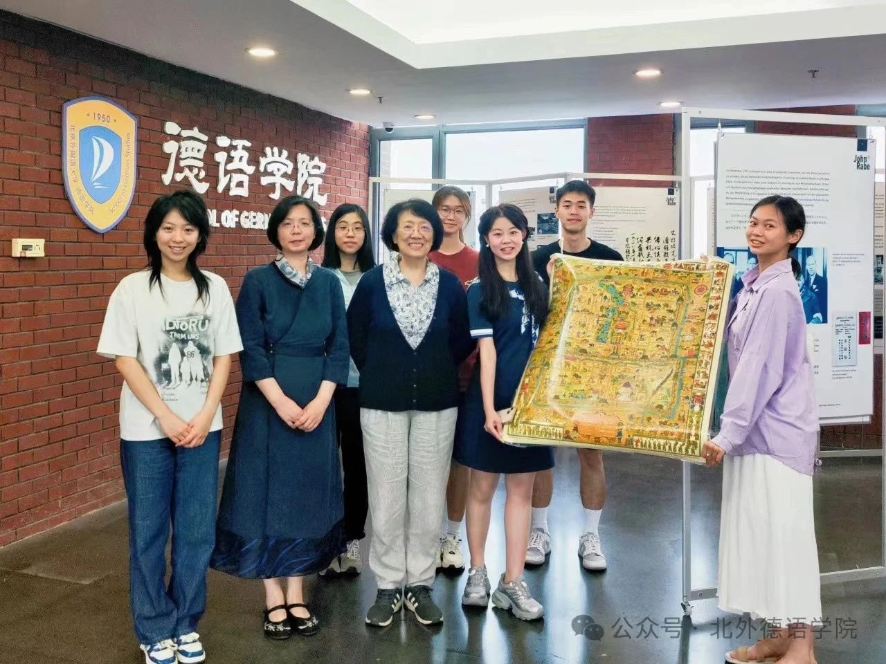 报告的最后,梁怡教授就自身经历以及从海德堡带回的老北京地图等珍贵史料与听众展开了互动与交流,并为买球官方网站“‘京’彩文化 青春绽放”行动之“跨越中轴线”项目组提出指导性意见。作为北京联合大学关工委成员,梁怡教授关心青年一代的成长成才,言谈举止中均展现出资深学者对学术后辈的提携与厚爱。报告结束后,与会师生在买球官方网站正在展出的“约翰·拉贝事迹展”展板前合影留念。师生纷纷表示,梁怡教授谈吐优雅又不失幽默,报告内容全面、资料详实,令人获益匪浅。