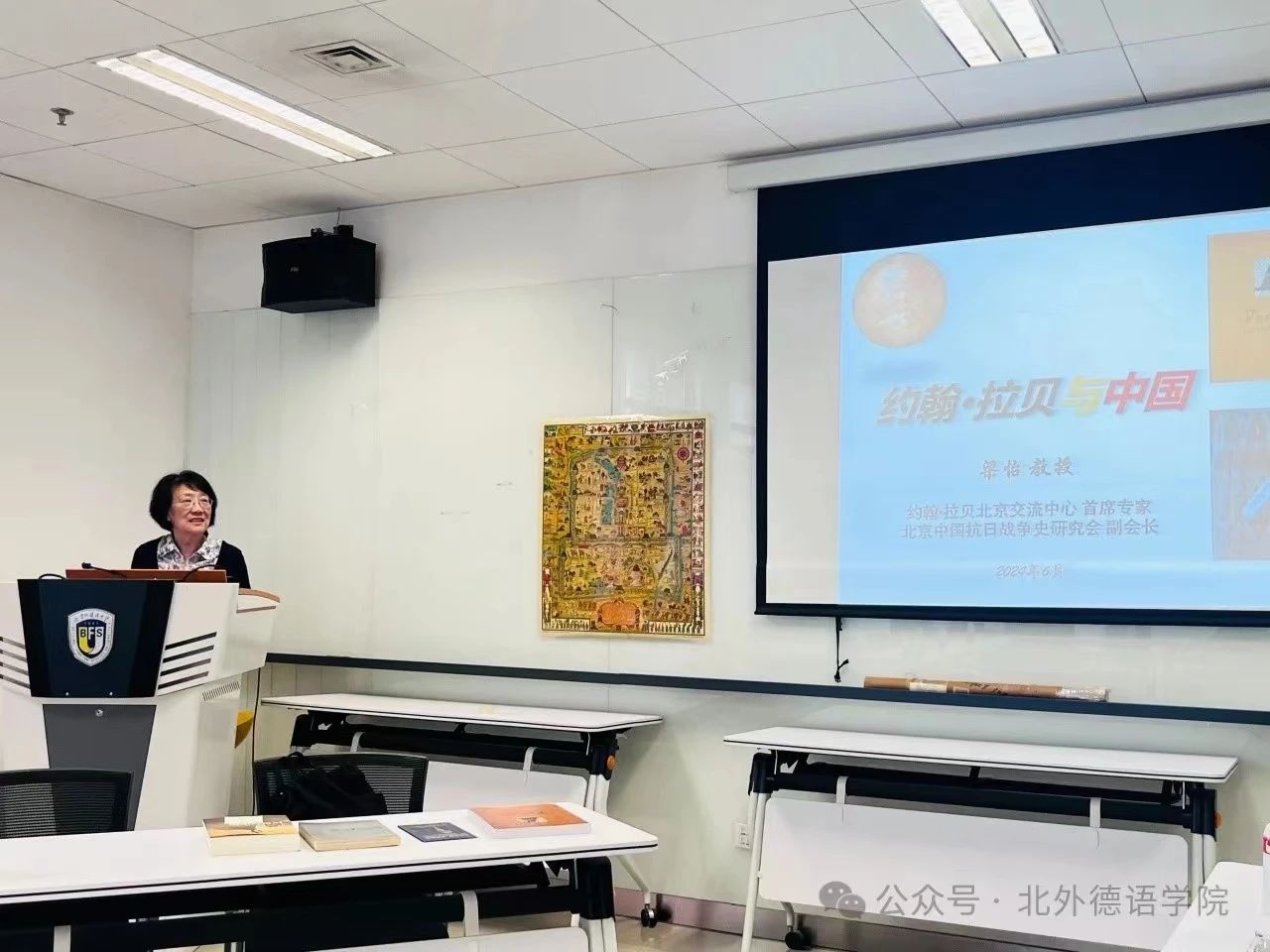 2024年6月13日下午,北京联合大学人文社科部原主任梁怡教授应邀为北外买球官方网站师生做题为“约翰·拉贝与中国”的讲座。本次报告会系买球官方网站人文社科通识系列讲座之一,讲座由买球官方网站书记、院长吴江主持。