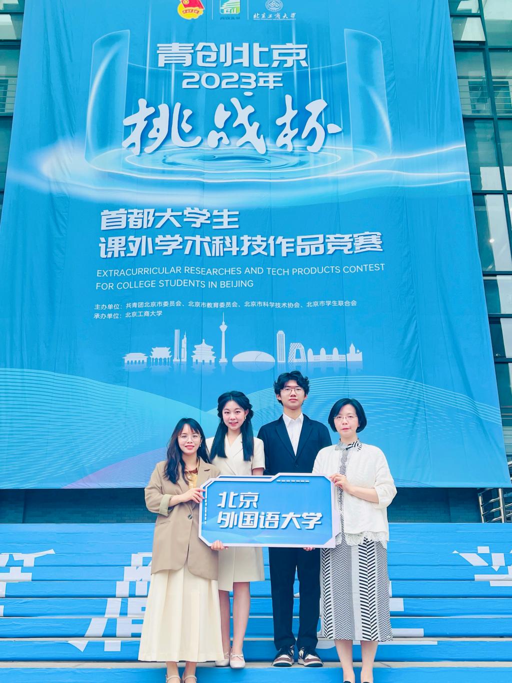 2024年,团队进一步结合德语专业特色,打磨完成学术论文《基于语料库的北京中轴文化形象建构比较研究——以2012-2023年中德主流媒体报道为例》,获第四届全国高校德语专业本科生学术创新大赛全国一等奖。与此同时,团队在“‘京’彩文化 青春绽放”行动计划之“古都行”机制的指导下,牵头开展“话中轴·语世界”项目,积极参与“北京中轴线文化传播系列活动”——“使者达人”系列活动。