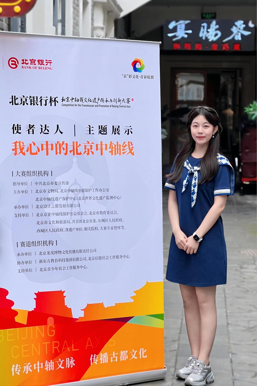 “北京银行杯”2024北京中轴线文化遗产传承与创新大赛“使者达人赛道”于5月正式启动,黄徐洋代表“跨越中轴线”团队积极参赛,成功通过预赛及复赛考核,并于7月7日前往泰安里文化艺术中心参加本次大赛“使者达人赛道”—“我心中的北京中轴线”主题展示赛道决赛。