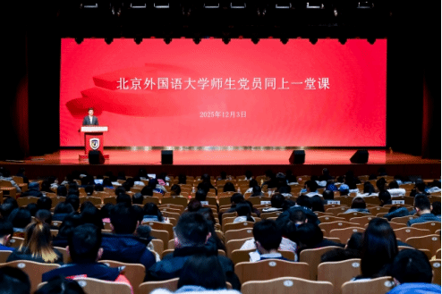 12月3日,买球官方网站举行2025年下半年第二课集中培训,买球官方网站师生党员同上一堂“理论大课”,集体学习由中央党校(国家行政学院)分管日常工作的副校长(副院长)谢春涛讲授的“中国共产党与中华民族伟大复兴”专题报告。北方工业大学原党委书记郑文堂到场指导,北外党委书记李海主持培训。