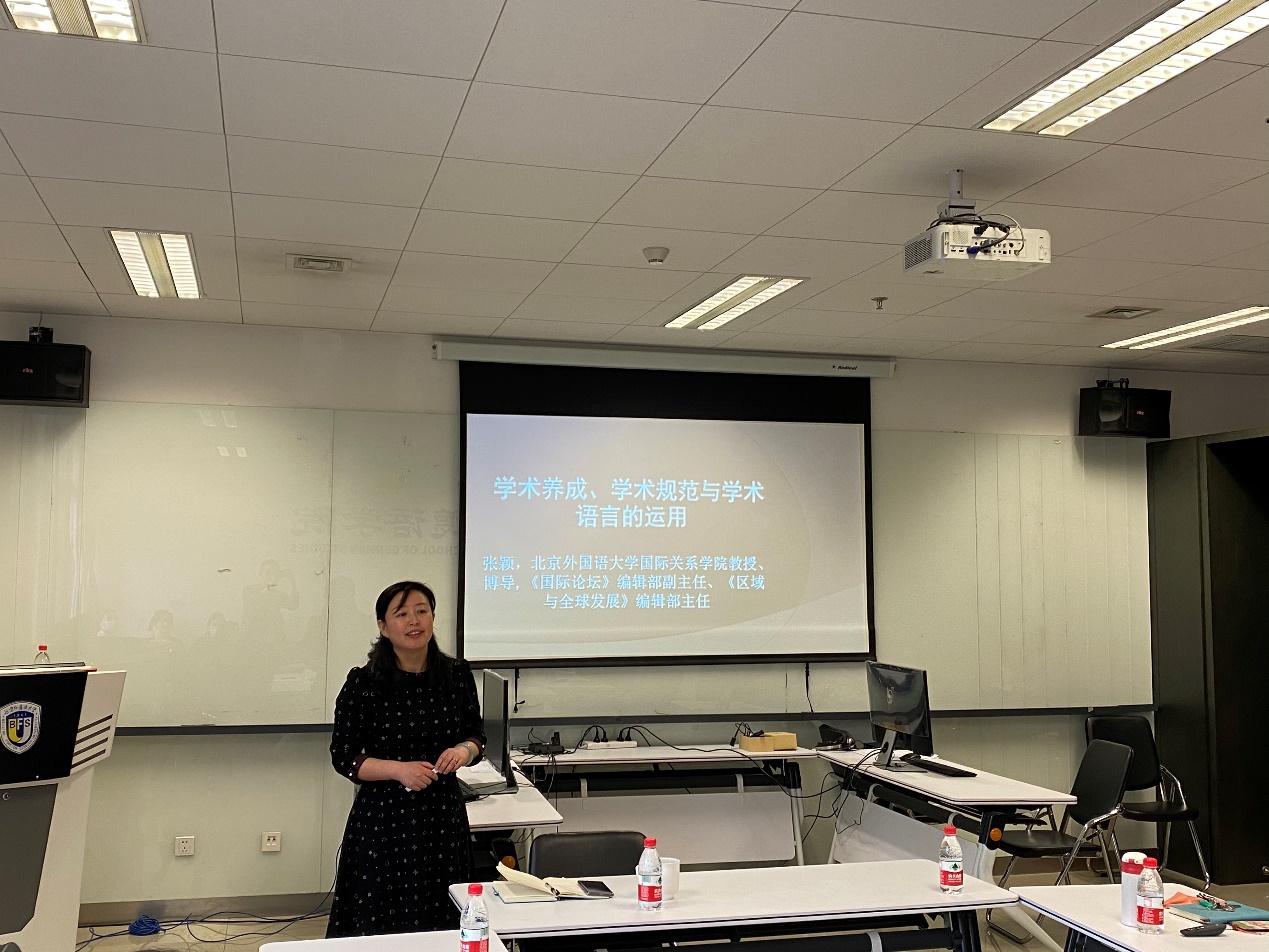2022年3月25日下午,买球官方网站学术写作系列讲座第2讲在北外国际大厦举行。买球官方网站国际关系学院张颖教授应邀作了题为“学术养成、学术规范与学术语言的运用”的讲座。买球官方网站教师与本硕博学生参加了此次活动。讲座由买球官方网站党总支副书记、院长吴江教授主持。