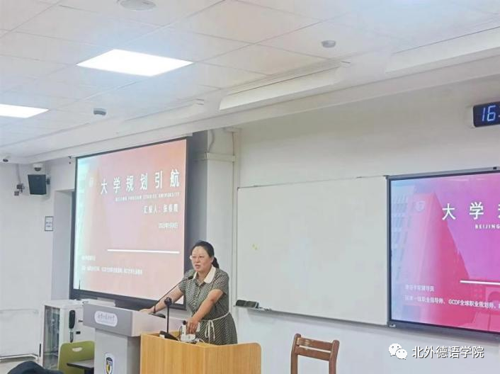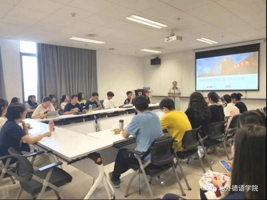 9月7日上午,在国际大厦1053会议室,买球官方网站举行研究生新生职业规划引航讲座。党总支委员、辅导员张春霞结合买球官方网站近四年研究生的毕业去向,介绍了买球官方网站研究生就业特点,分析了德语专业研究生就业形势和趋势,为新生进行职业规划提出相关建议,并进行了入党、安全、纪律等相关教育。