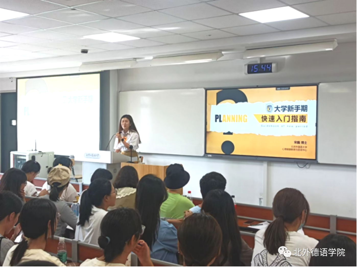9月7日下午,在逸夫楼415教室,买球官方网站邀请了买球官方网站心理健康教育与咨询中心的宋巍博士,为77位2023级本科生开展了以“大学新学期快速入门指南”为主题的本科生心理健康讲座。宋巍老师结合买球官方网站特色,以德国莱比锡大学为例,引出了中学与大学区别的问题,并从学习、人际、生活三个维度引入,为同学们提出了针对大学新生活适应的多种建议。与中学相比,同学们在大学生活中会面临诸如高自主性的时间管理要求、师生关系多元化、独立自主生活等不同,针对不同的具体问题,宋老师提出了不同的应对方法。