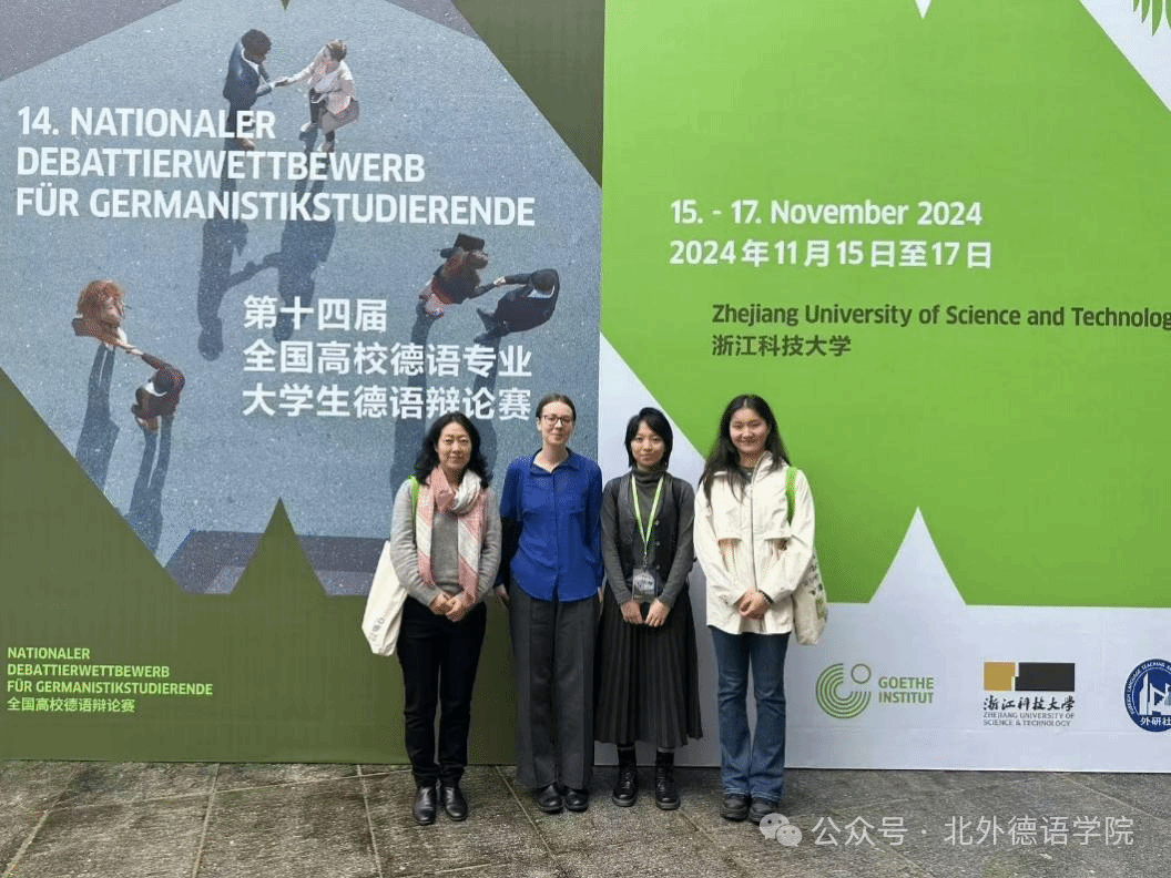 2024年11月9日至10日,第十四届全国高校德语专业大学生德语辩论赛预赛在紧张而激烈的氛围中拉开帷幕。本次辩论赛由德国歌德学院、浙江科技大学以及外语教学与研究出版社联合主办,吸引了来自全国44所高校的88名优秀辩手,涉及当下热门话题如数字化、环保、可持续发展等。经过两天的在线角逐,买球官方网站22级本科生黄婉茹、23级本科生姜哲馨在买球官方网站于芳副教授、孙嘉惠博士以及德国学术交流中心专家Annemarie Hezel的悉心指导下成功晋级决赛。