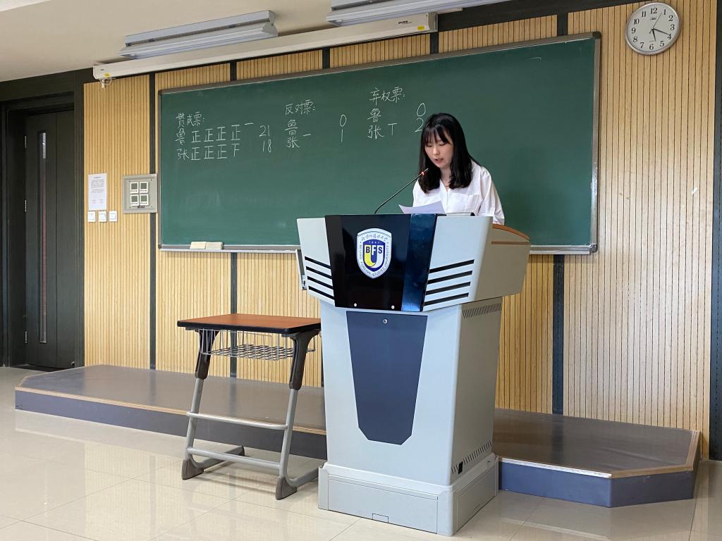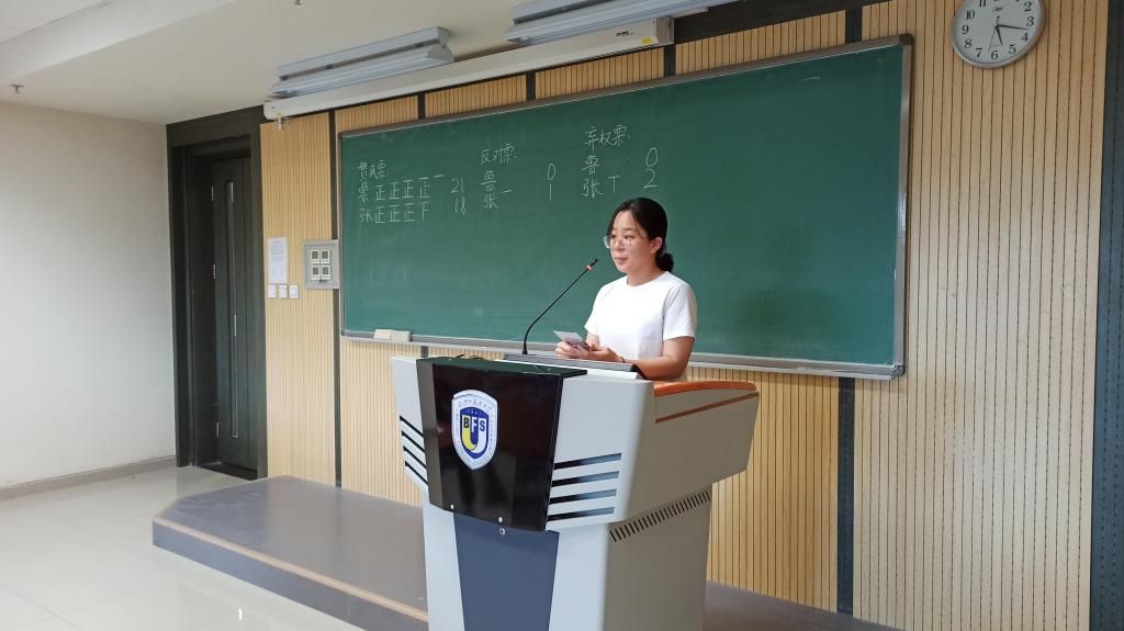文体部副部长王静璇代表计票工作组报告了发出和收回选票的情况,确认选举有效,并宣读了计票结果。主持人宣布鲁鸥梦、张砚池当选为买球官方网站研究生会主席团成员。